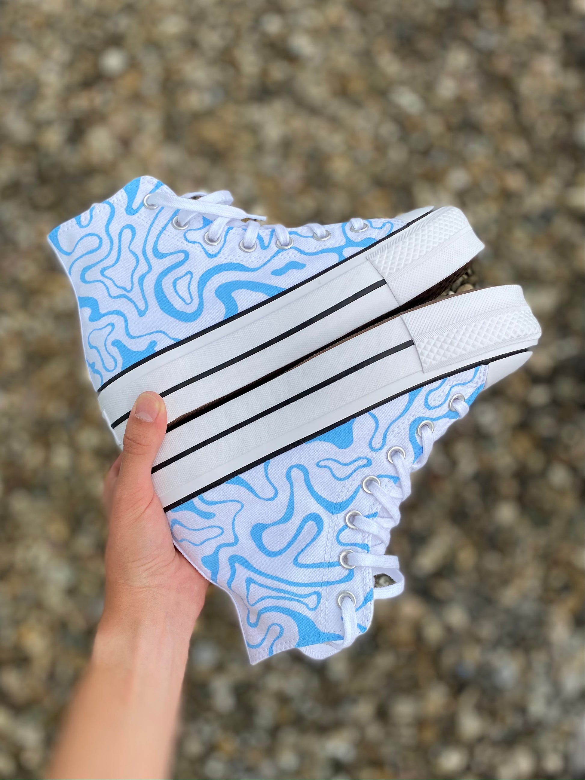 So the shoes are easy to clean with soap and lukewarm water. Please do NOT throw your custommade shoes in the washing machine!