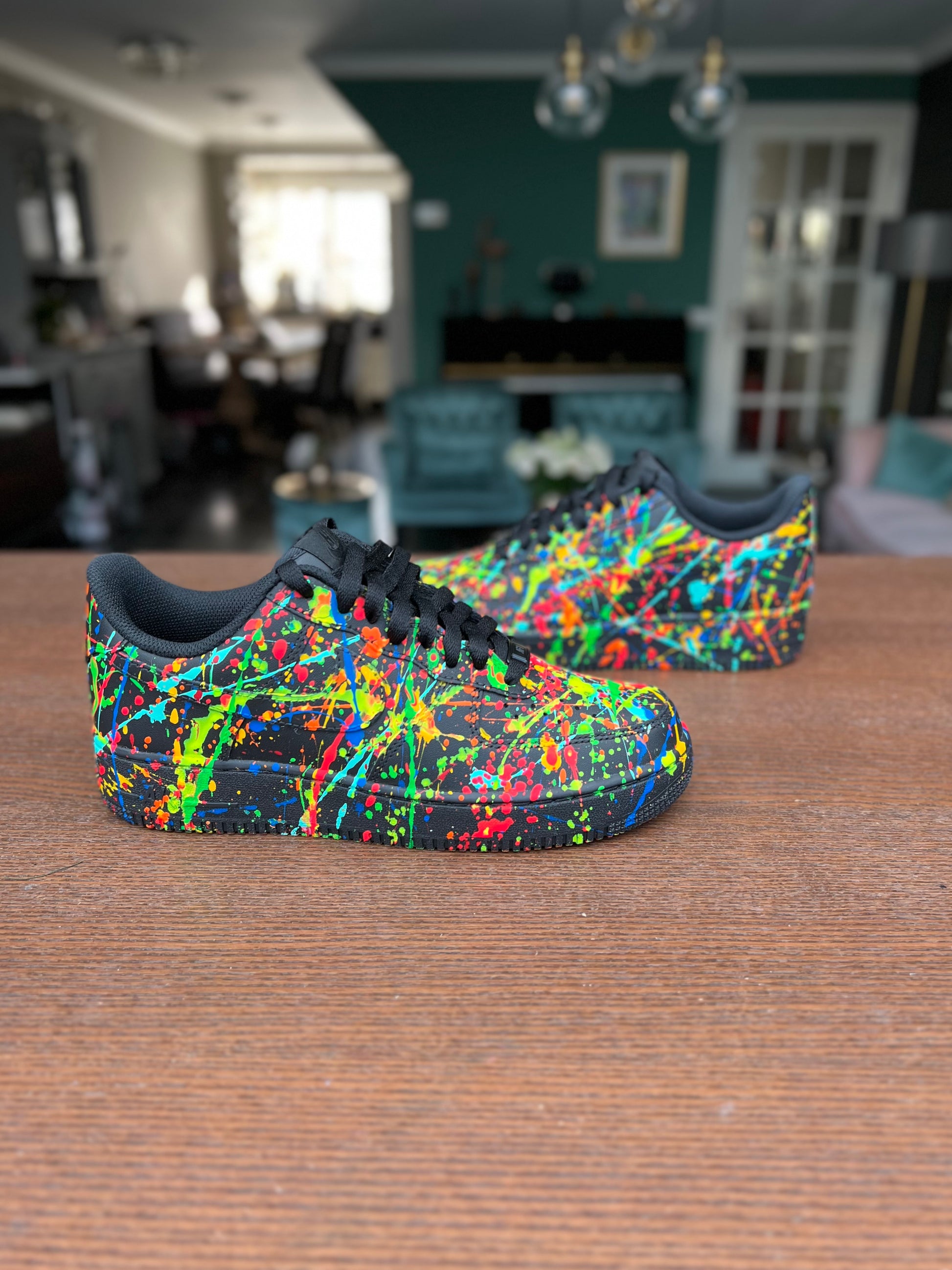 CUSTOM BLACK AF1 COLORFUL PAINT SPLASH.